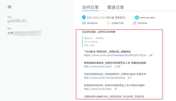如上图所示,借助识微互动,您的网站每一位留下信息的客户都能追踪到他来自哪个推广渠道,上图客户就来自360搜索渠道。